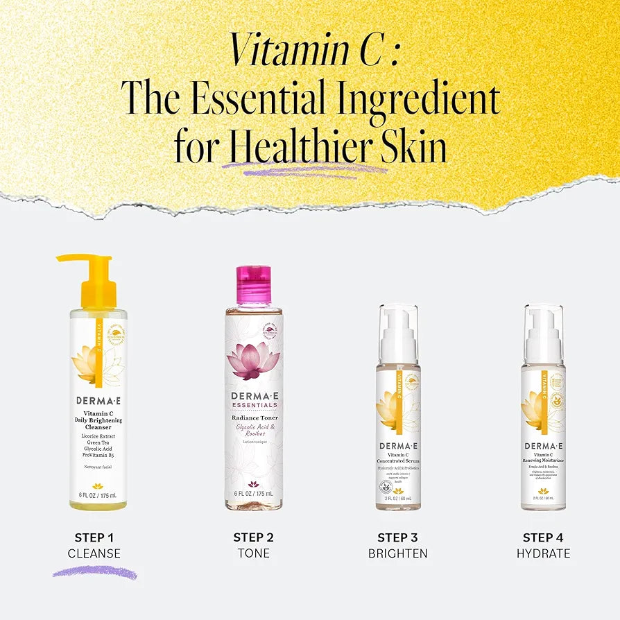 Derma E Vitamin C Cleanser - Daily Brightening & Hydrating Face Wash to Even Out Skin Tone – Moisturizing Face Cleanser for a Radiant Glow, 6 fl oz